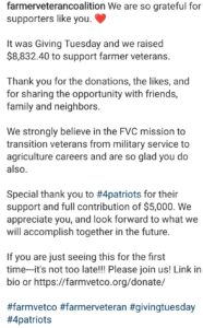 “The most common addresses of our veteran members are rural route and county road,” said FVC Founder and Director Michael O’Gorman. “Our community of farmer veterans, whether they live far from town or in town, benefit greatly from the chance to meet each other and share ideas in person at our national conference.”